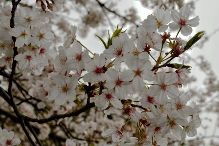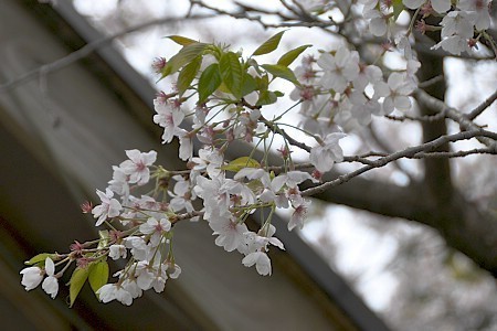 The cherry trees around the Hirakawa Zoo reached full bloom a few days ago. They are beginning to lose their petals and many new leaves are visible among the blossoms. There is a high chance of rain over the next few days and the blossoms are at a state where the rain could shorten the cherry blossom season.