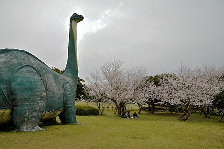 The Sakurajima Dinosaur Park is a city park on Sakurajima, a volcanic peninsula in Kagoshima Bay. The park is geared toward children and has a number of fiberglass dinosaur play structures among several hundred cherry trees. This is a popular spot to hold cherry blossom viewing parties (hanami) especially with those with small children.