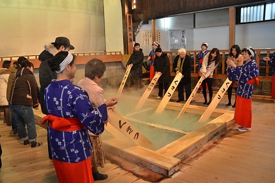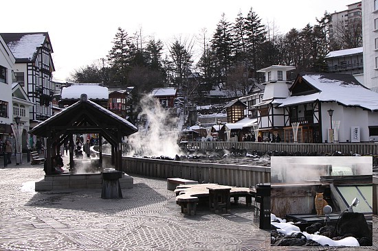 A day which starts with a trip to an onsen can't be bad, especially if it's to Kusatsu. It was a beautiful day: nice sunshine, clear sky, good company. It was cold but not too cold - a heart charged with excitement brings with it warmth to the body.