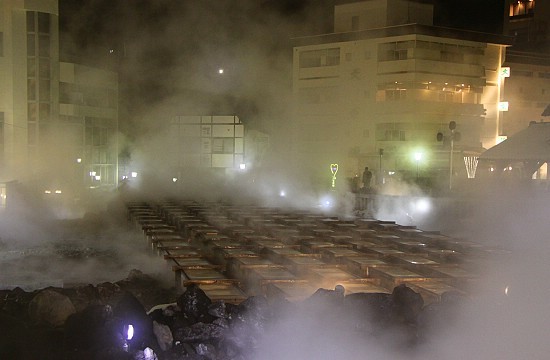 We took a stroll down the river to look at the spot whereby they add alkaline to neutralize the acidic spring water, so that the people downstream would have streams with fish in them. Then, we went to the town center to look at the Yubatake.