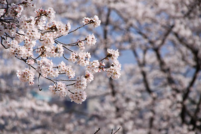 Today, I found the trees to be just about at the 80% mark. I overheard a conversation remarking how much progress the cherry blossoms here had made in a day, as the trees had barely been flowering yet yesterday. This means that tomorrow the cherry trees at Akagi Senbozakura will probably be at their best, and unfortunately they are in for a head-on collision with the bad weather over the weekend. This spot has the best chance among those that I have visited today to retain pleasant views into Monday.
