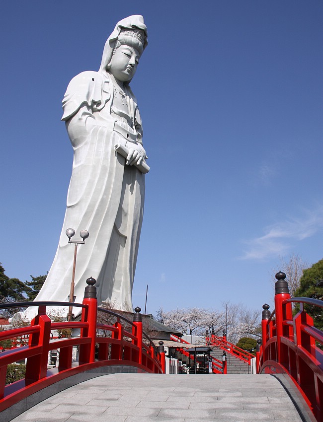 Takasaki Kannonyama Park is a large, forested park in the mountains to the west of the city center. At the center of attraction is a magnificent 42 meter high statue of Kannon, the Buddhist Goddess of Mercy. Yesterday's rain must have caused some petals to fall prematurely, but today I still found the many cherry trees around the park grounds in full bloom. Unfortunately strong winds and rain are predicted for this coming weekend; therefore tomorrow might be the last chance to catch the best views at the park.