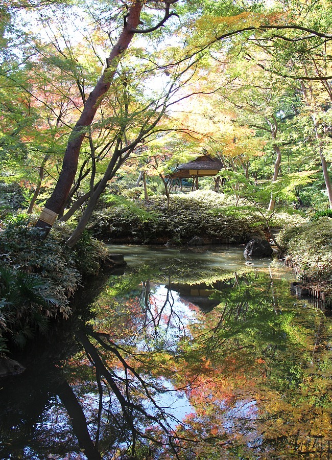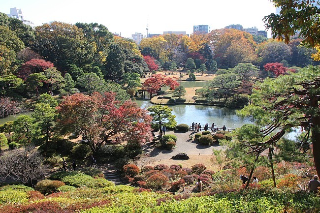 Orange maple leaves beckoned my attention as I passed through the gates of Rikugien Garden. After taking a moment or two to enjoy the leaves that glowed in the morning sun, I strolled across the garden - perhaps Tokyo's most celebrated - and saw some nice fall views. Colors were warm, falling on both sides of the spectrum from orange, but a few more cold nights would ironically make them hot.