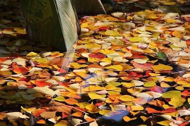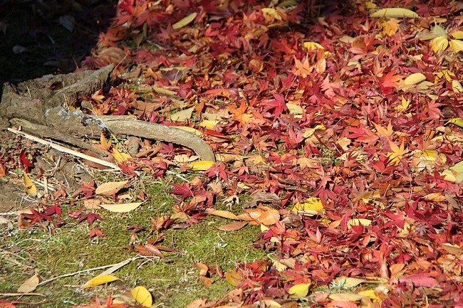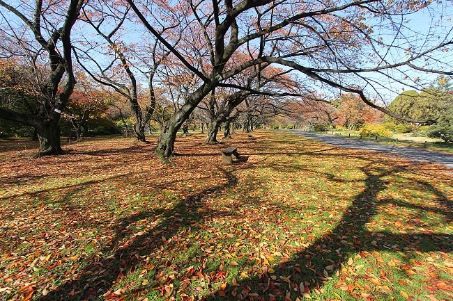 Blue and indigo skies accentuated the autumn leaves at the Koishikawa Botanical Gardens. Not all of the leaves were autumn leaves yet though: some were still summer leaves; some are forever "summer leaves"; some were somewhere in between; others like those from the cherry trees had already been passed from their parent branches to mother earth, like batons on a never-ending relay of life.