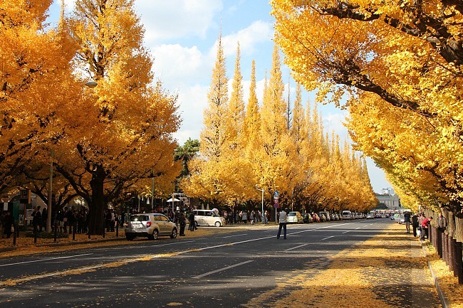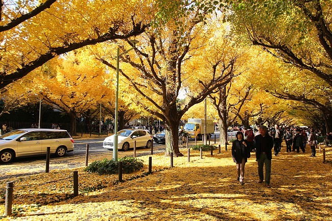 Yellow ginkgo trees flanked the Icho Namiki Avenue, and they brightened up my day. They most likely did so too for the others who were present, some passing by while commuting to work or school, most others like me, who travelled there on purpose to enjoy the beautiful cone-shaped trees stretching down the lane.