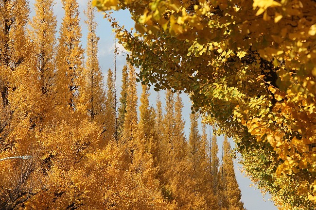 Greeted by two long rows of soldier-lookalikes with brown uniforms and tall golden hats, a personal realization dawned: I really like trees that produce golden yellow colors, like gingko and larch trees. One of the best views I have had this year. Can't say I liked the smell though.